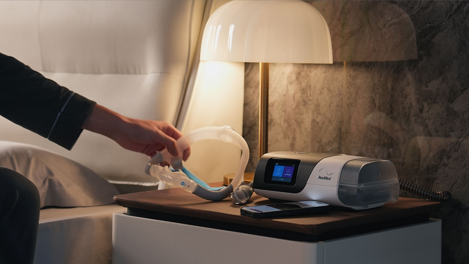 Airsense™11 包括 Airsense™ 11 AutoSet 和 Airsense™ 11 Elite 两款型号,画面中产品为 Airsense™ 11 Autoset。